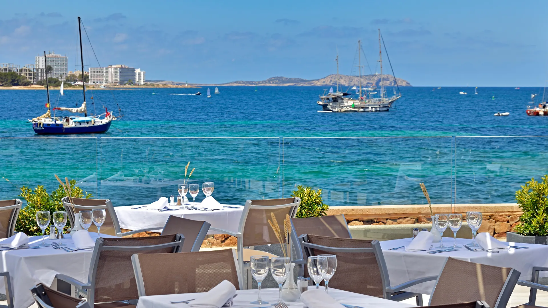 The hotel is located in the bay of San Antonio on first sea line and 17km from the center of Ibiza, 0.5 km from playa es pouet. It offers one for kids with hammocks area and direct access to the beach. All the modern rooms are furnished with a free safe, and free WiFi.
